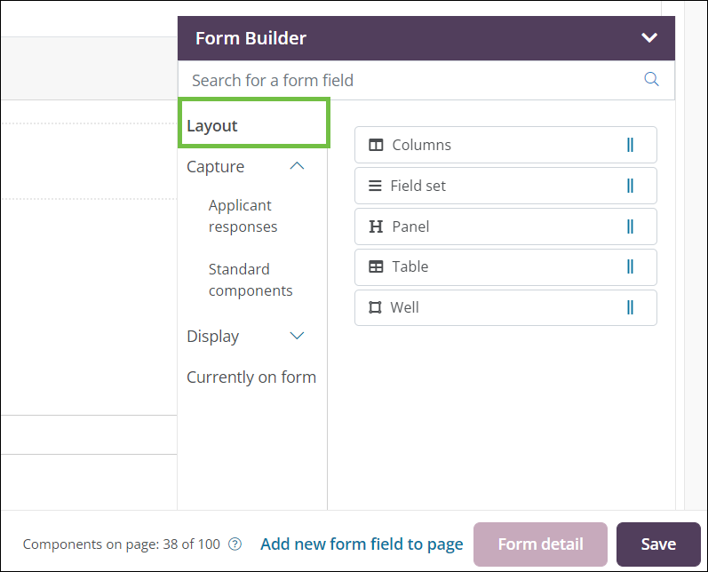 After the layout component has been added to the form, you will be able to move it around the page or even copy and paste it into a new page in the form.